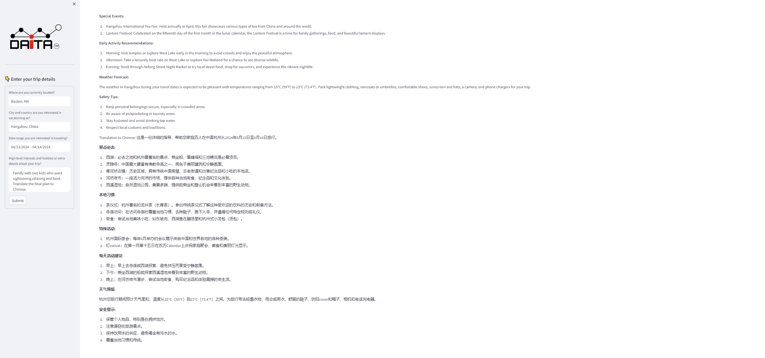 This revolutionary service harnesses the power of AI to deliver personalized trip itineraries tailored to your unique interests and preferences. Forget the hours of searching and the frustration of finding the perfect travel experiences. With our AI crew, you'll get: